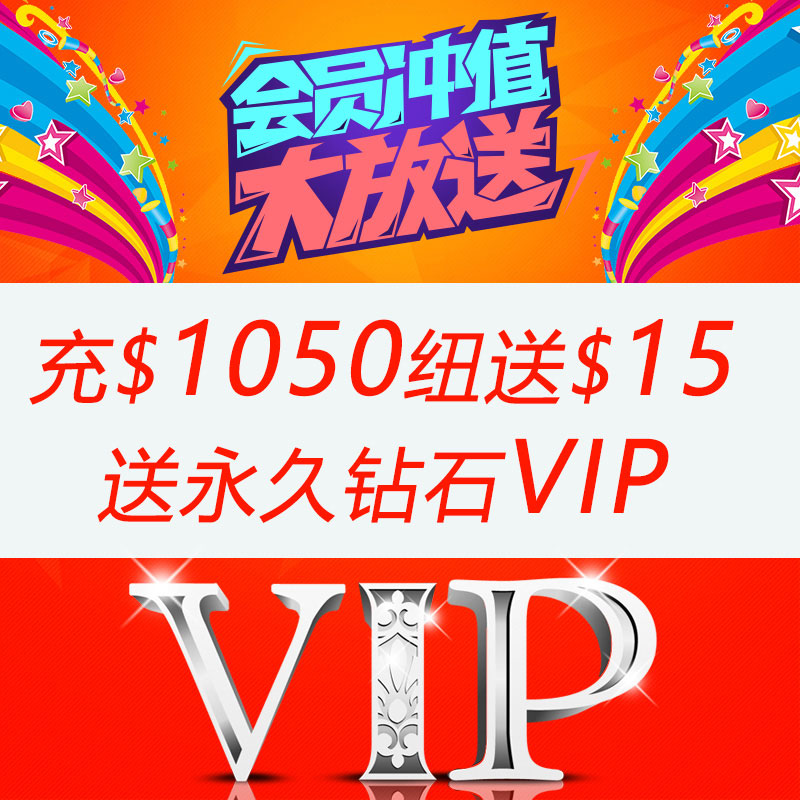 会员充值$1050纽送$15,送vip钻级会员