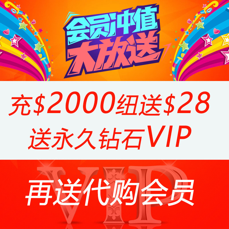 会员充值$2000纽送$28,送vip钻级会员+代购会员