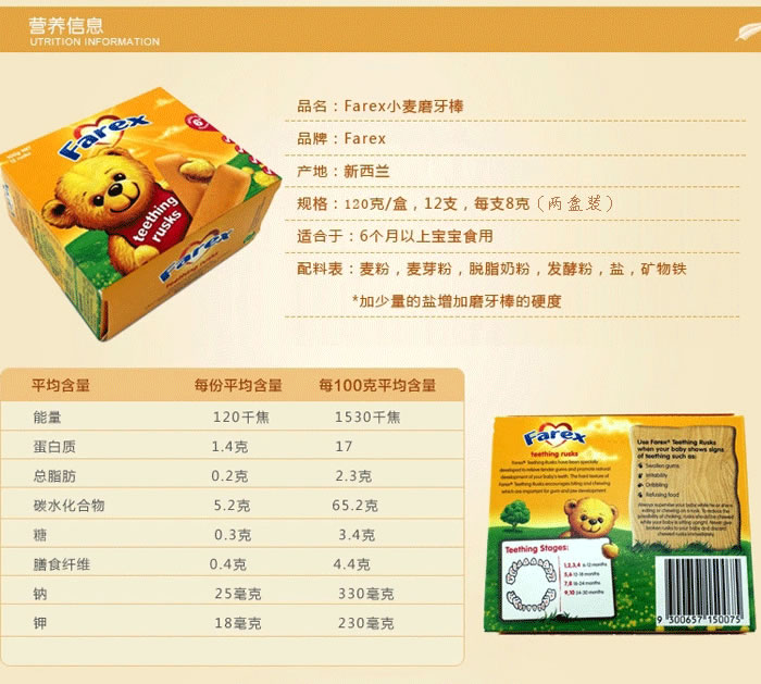 Farex 婴儿小麦磨牙棒6个月+ 12支 100克