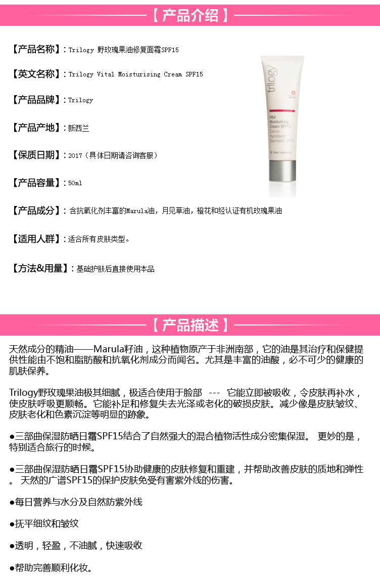 Trilogy 玫瑰果油保湿防晒霜日霜SPF15 50ml