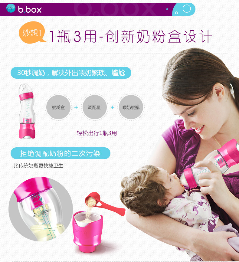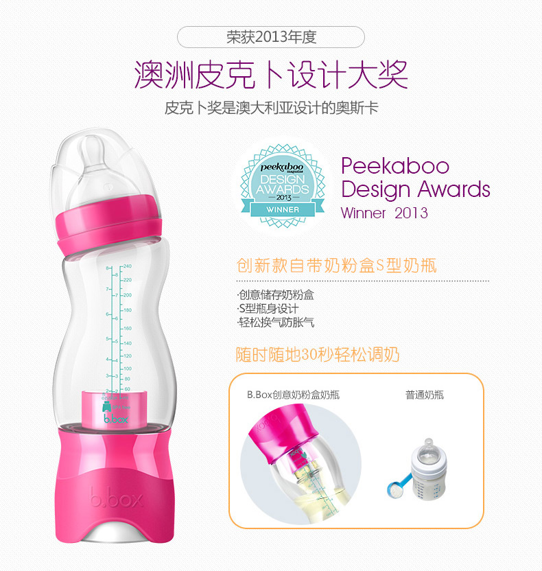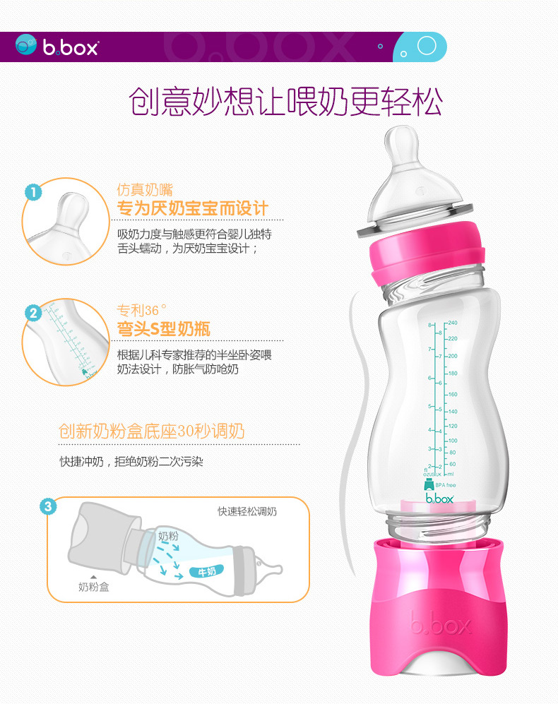 B Box 奶瓶 240ml自带奶粉盒防摔防胀气