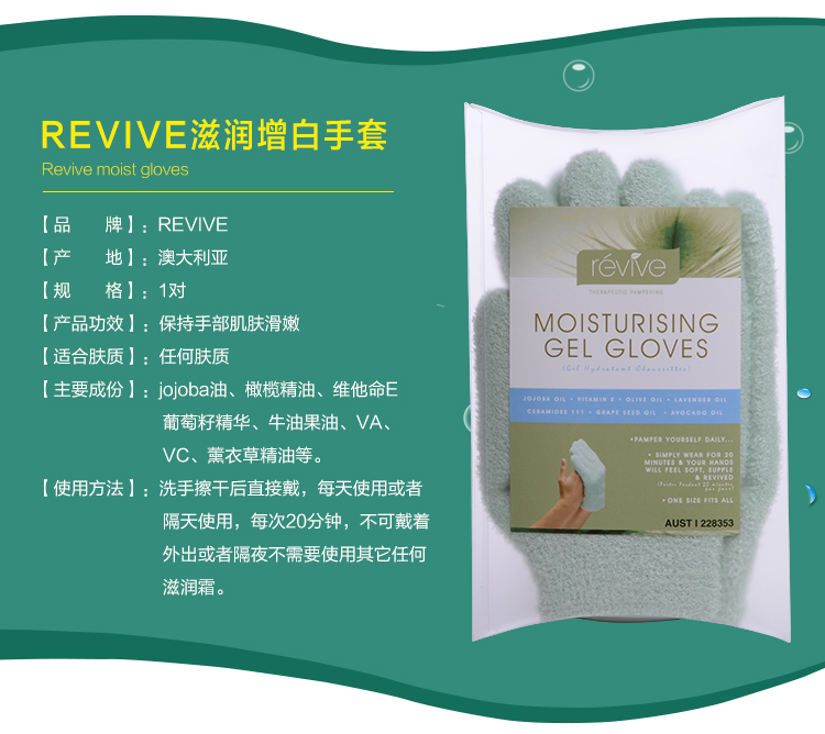Revive 深层滋润保湿手套 1对