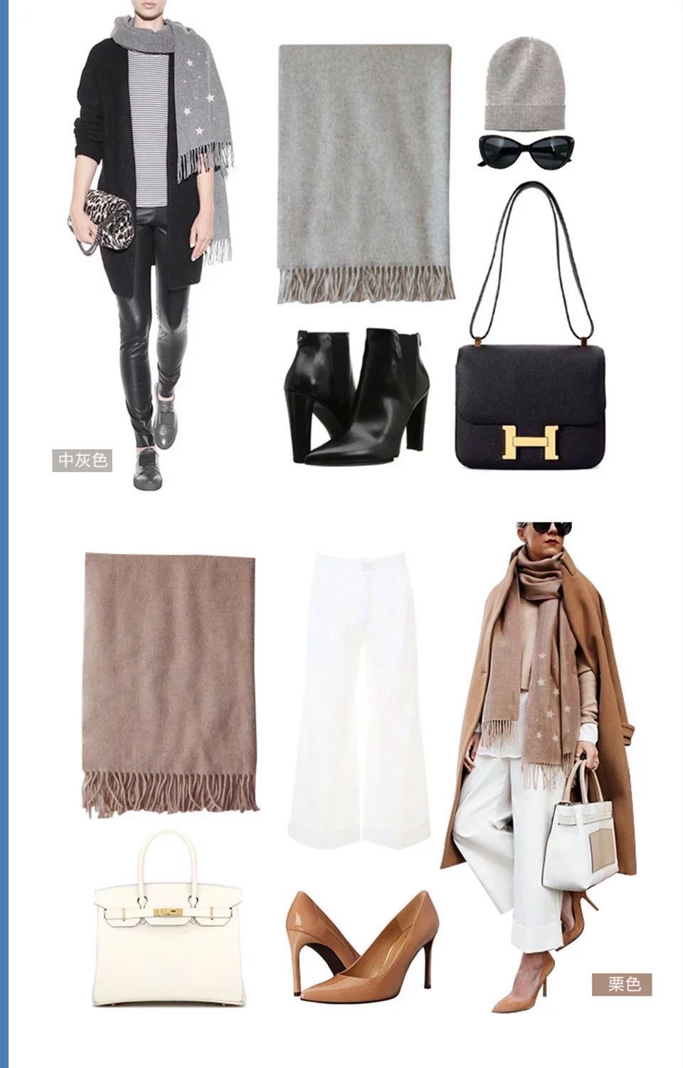 【1件包直邮】YPL 星空羊绒围巾 秋冬保暖 空调房披肩 百搭长款 200cm*70cm 星空灰