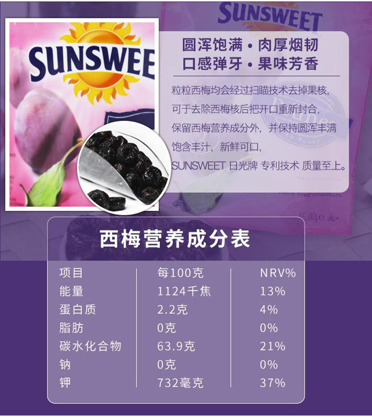 SUNSWEET 阳光大西梅干 400g高纤维 吃不胖的零食