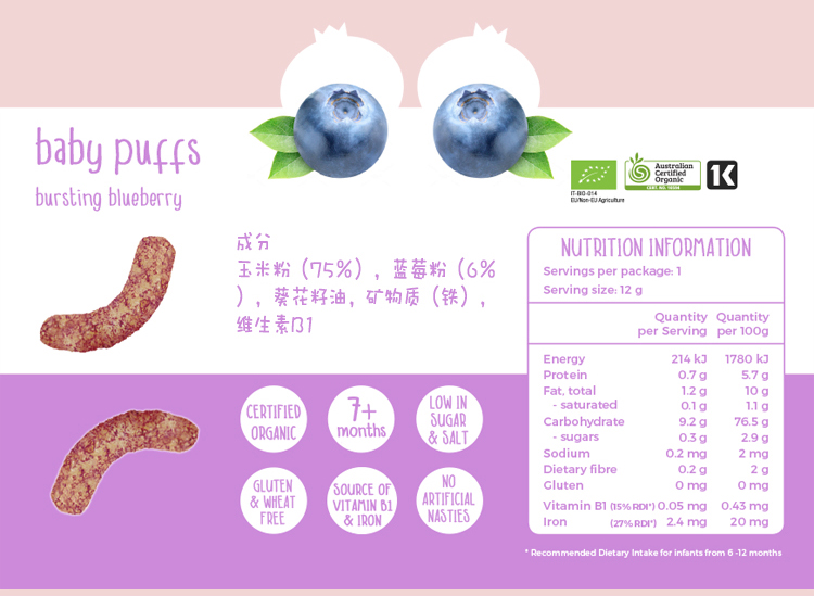 little bellies儿童泡芙 蓝莓/胡萝卜口味 12g
