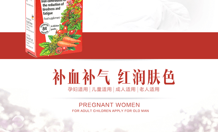 RedSeal红印Floradix系列铁元 维他命补铁片补血改善贫血 84粒 -