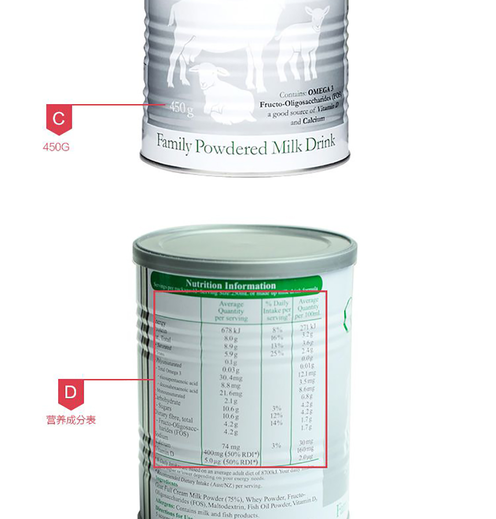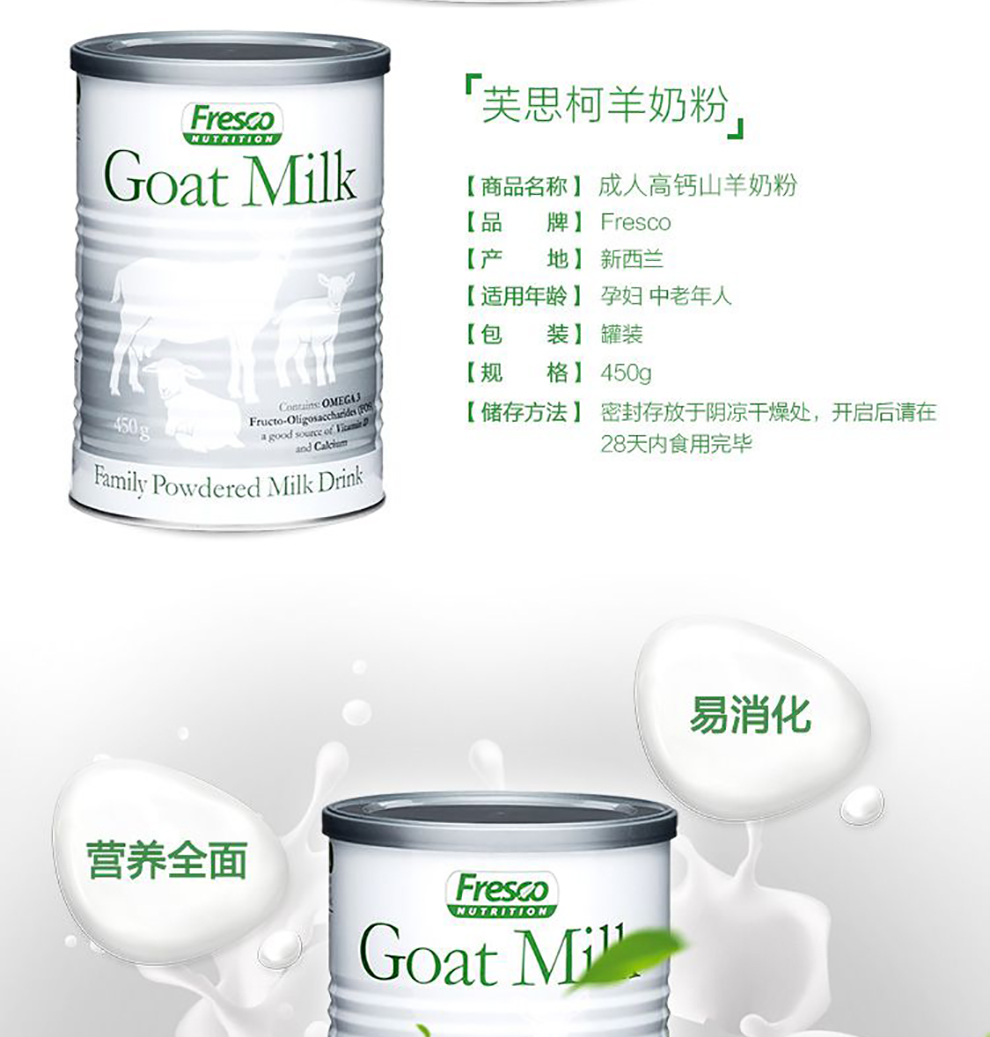 Fresco 芙思柯 全脂高钙成人中老年羊奶粉 450g/罐