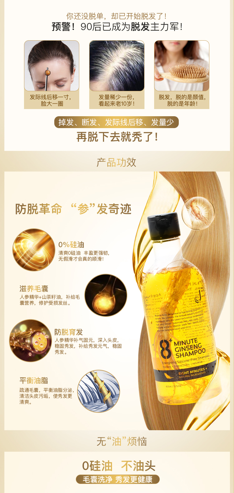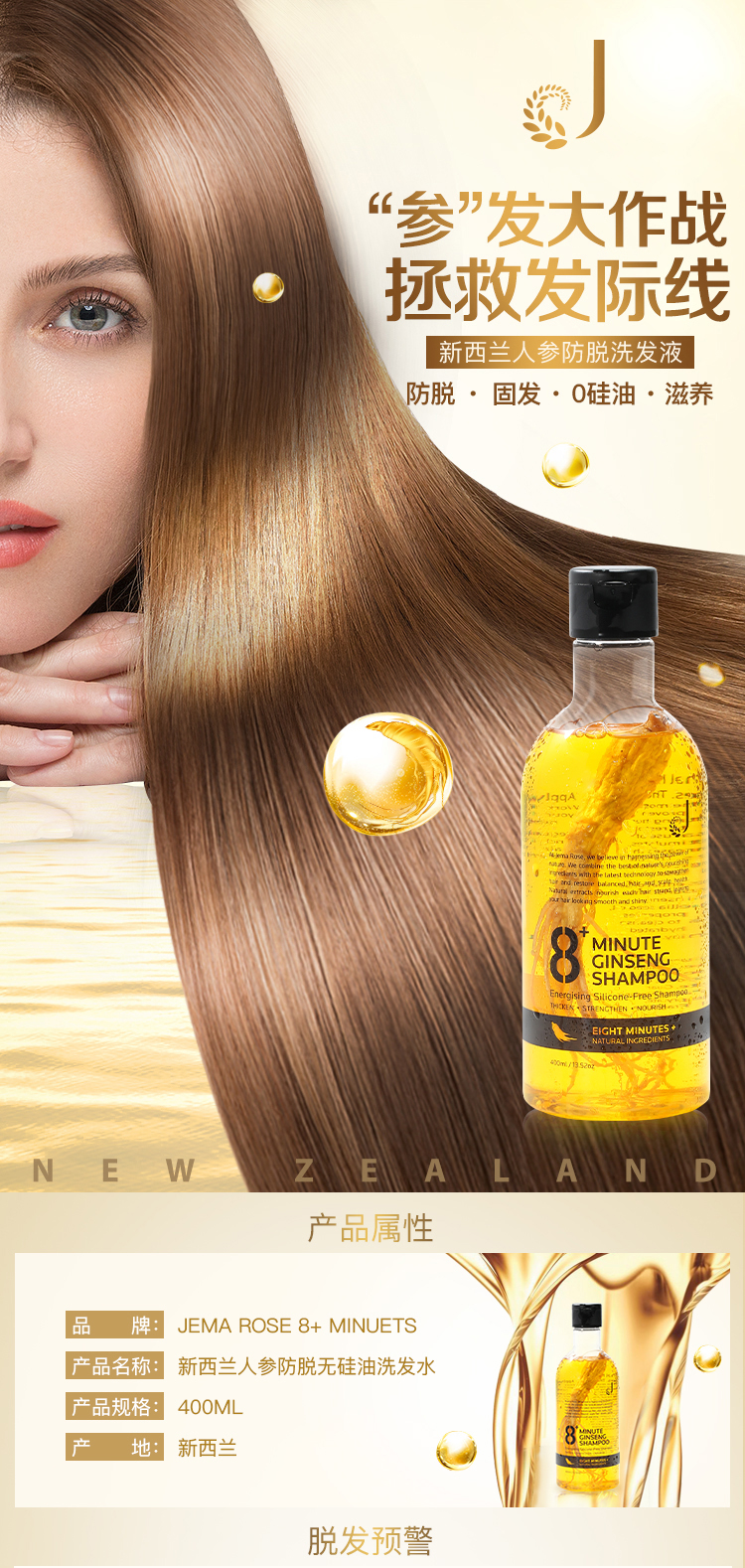 Jema Rose 8+ MINUTES shampoo 8分钟人参防脱无硅油洗发水送1瓶洗发水400ml