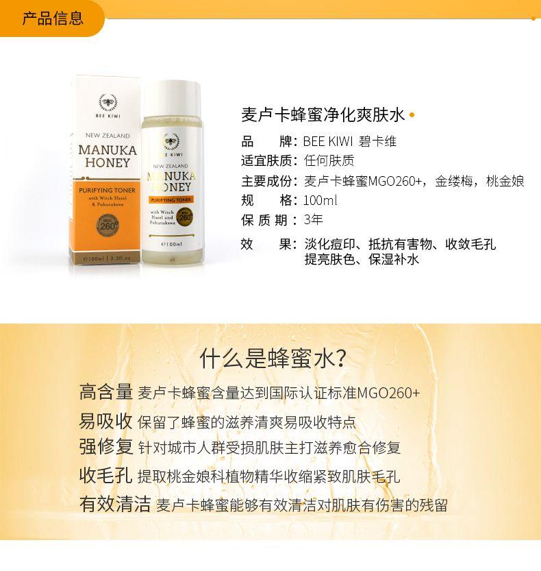 新西兰Nature's Beauty自然美Bee kiwi碧卡维麦卢卡爽肤水100ml