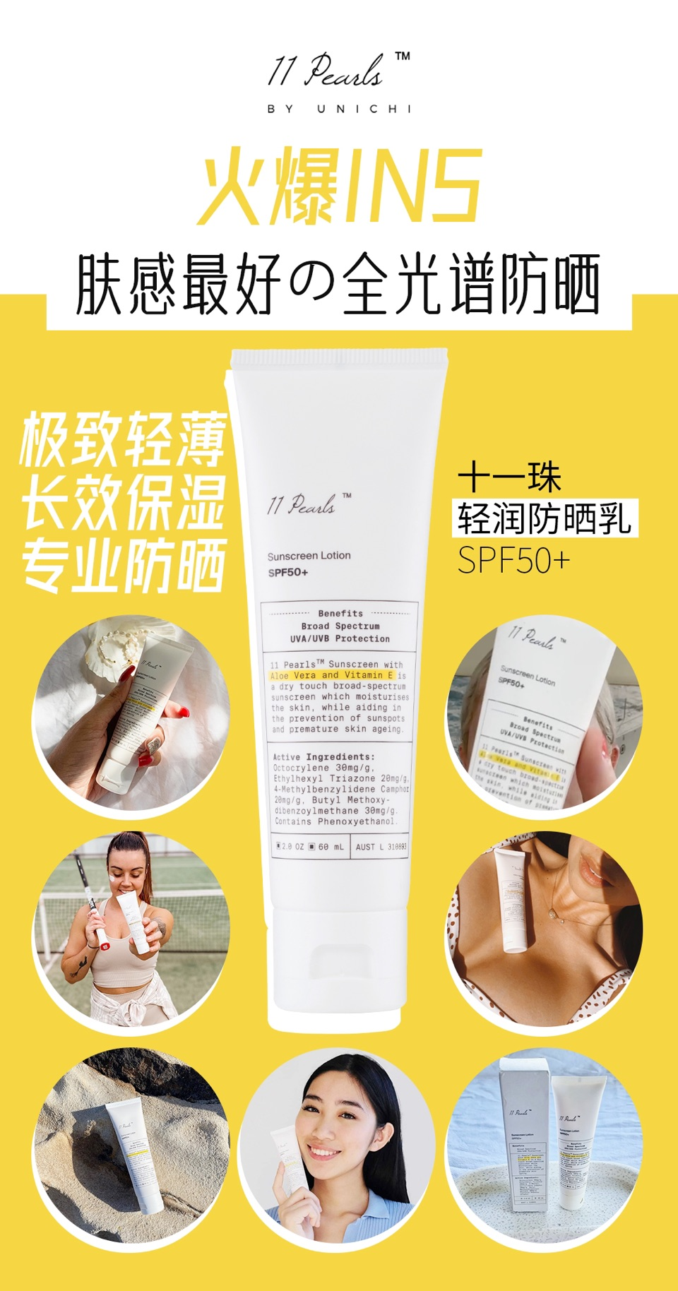澳洲#Unichi# 11 Pearls™# 十一珠#珍珠美白#防晒乳#SPF50+ 60ml#清爽#不油腻#轻薄#保湿#澳洲Unichi 11 Pearls™ 十一珠 珍珠美白防晒乳SPF50+ 60ml#防晒十一珠#防晒#防晒乳液#澳洲Unichi 11 Pearls™ 十一珠 珍珠美白防晒乳SPF50+ 60ml#澳洲Unichi 11 Pearls™ 十一珠 珍珠美白防晒乳SPF50+ 60ml#澳洲Unichi 11 Pearls™ 十一珠 珍珠美白防晒乳SPF50+ 60ml#