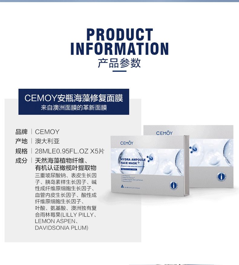 【现货/澳/新直邮】澳洲安瓶Cemoy海藻冻凝修复面膜5片装