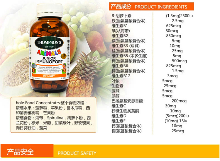 Thompsons Animals Junior Immunofort 90t#免疫力#儿童维生素#生长发育#Thompsons#汤普森#儿童综合#营养免疫片#Thompsons 汤普森儿童综合营养免疫片 90粒