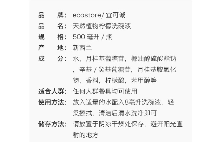 ecostore#纯植物洗洁精#宜可诚#Ecostore#餐具清洗剂#洗洁精#柠檬味#500ml#孕妇和敏感肤质可用#厨房用品#清洁#ecostore 纯植物餐具清洗剂洗洁精 柠檬味 500ml# 孕妇和敏感肤质可用#Ecostore 纯植物餐具清洗剂洗洁精 柠檬味 500ml #Ecostore 纯植物餐具清洗剂洗洁精 柠檬味 500ml #Ecostore 纯植物餐具清洗剂洗洁精 柠檬味 500ml #