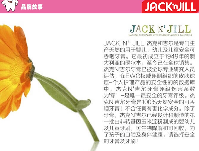 Jack N' Jill 澳洲专业宝宝牙膏生产厂家,只生产高品质宝宝有机牙膏和环保可降解牙刷,品牌始创于1949年,60多年的老牌。