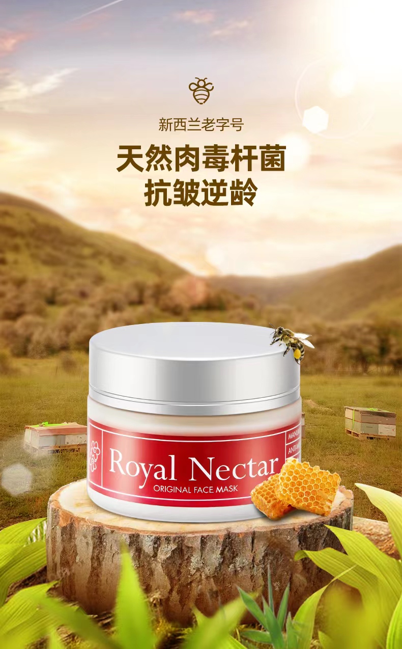 【产品介绍】Royal Nectar 皇家蜂毒面膜(抗皱紧肤/美白保湿)是一款快速的抗衰老的配方,具有保湿补水,洁肤美白功效的天然有机混合面膜。富含天然植物精华,麦卢卡蜂蜜和皇家蜂毒,有效深层清洁肌肤的同时,能持久保湿补水,具有超强抗氧化的能力。是面部瑕疵与黑头的终结者。长期使用能有效促进新陈代谢,预防皱纹,舒缓修护,活肤紧肤,抗菌消炎,细致毛孔,去黑头,保证肌肤健康红润。