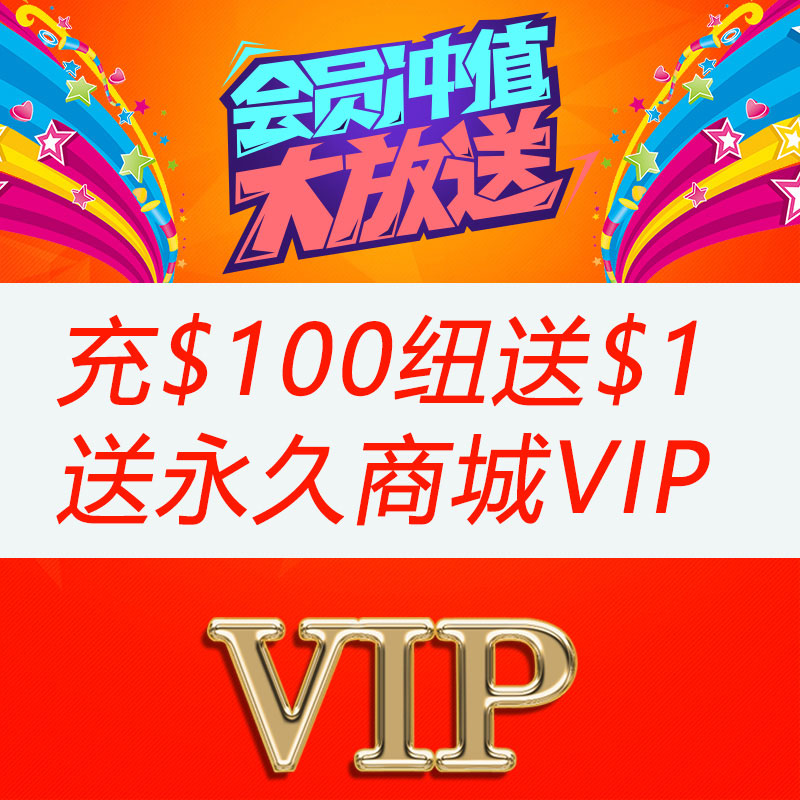 会员充值$100纽送$1,送商城vip