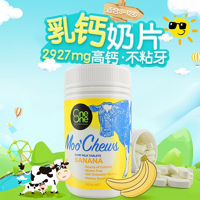 特价-OneOne 奥尼小牛 儿童乳钙奶片 香蕉味 100片