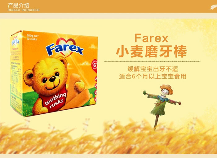 Farex 婴儿小麦磨牙棒6个月+ 12支 100克