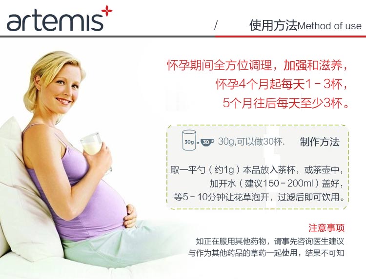 【产品介绍】rtemis孕妇花草茶味道怡人,是怀孕期间咖啡和普通茶的理想代替品。传统的欧洲配方,已经被瑞士官方产妇护理机构采用,被认为是非常安全并且有效,在生产的时候尤其宝贵,因为可以增加子宫的力量,让宝宝顺利出生。