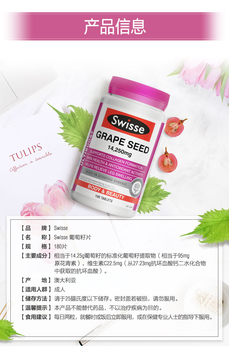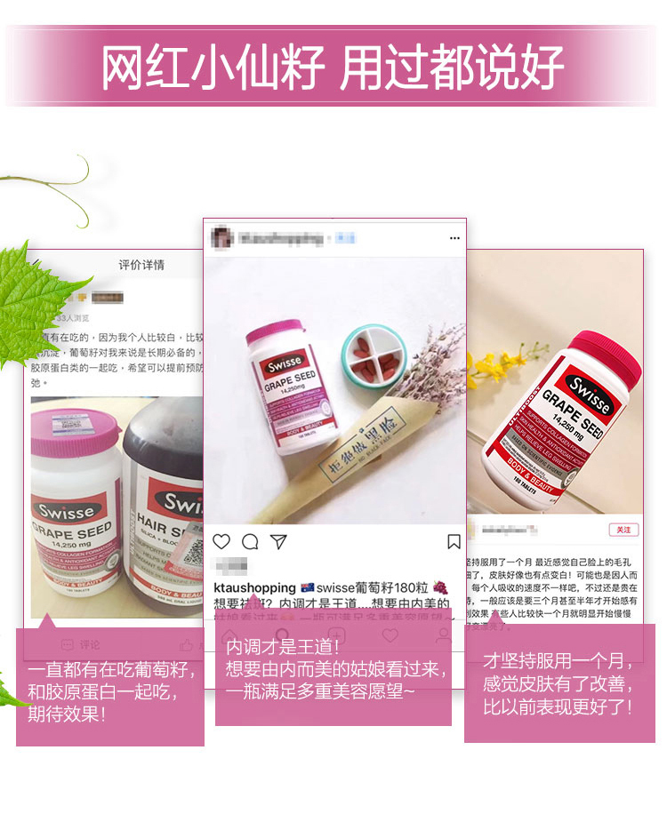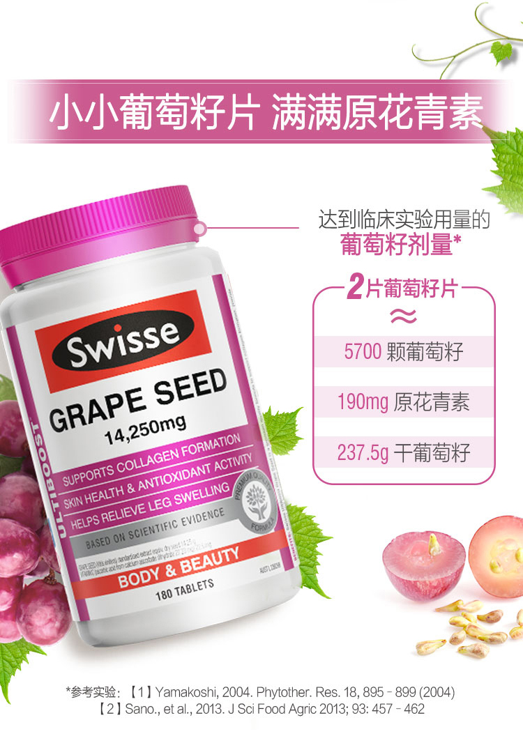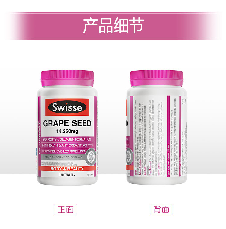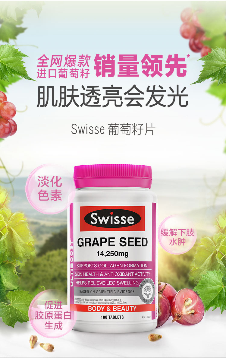 Swisse Grape Seed 180s#Swiss#葡萄籽#美白#抗皱#延缓衰老#淡化色素#缓解下肢水肿#促成胶原蛋白生成#祛斑#Swisse 葡萄籽精华180粒#减轻水肿#胶原蛋白#Swisse 葡萄籽精华180粒#Swisse 葡萄籽精华180粒#Swisse 葡萄籽精华180粒#Swisse 葡萄籽精华180粒#