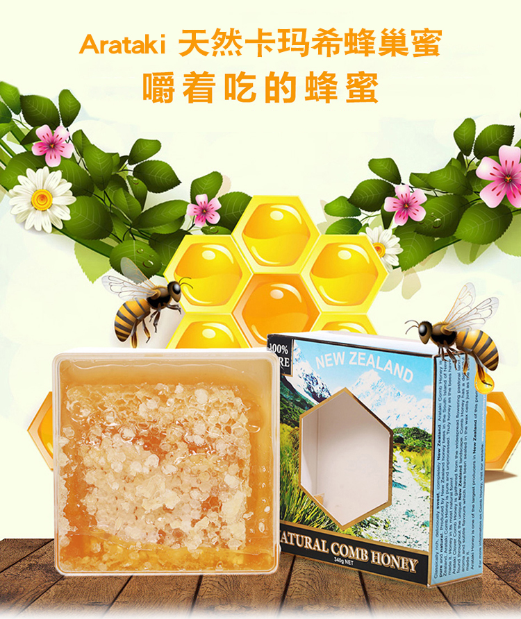 Arataki 100纯天然蜂巢蜂蜜340g缓解鼻炎