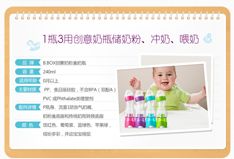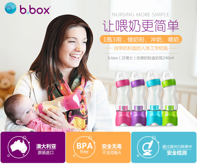 B Box 奶瓶 240ml自带奶粉盒防摔防胀气