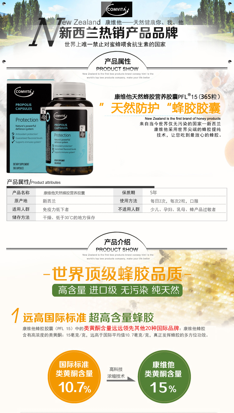 Comvita 康维他蜂胶胶囊 PFL15 365粒 -