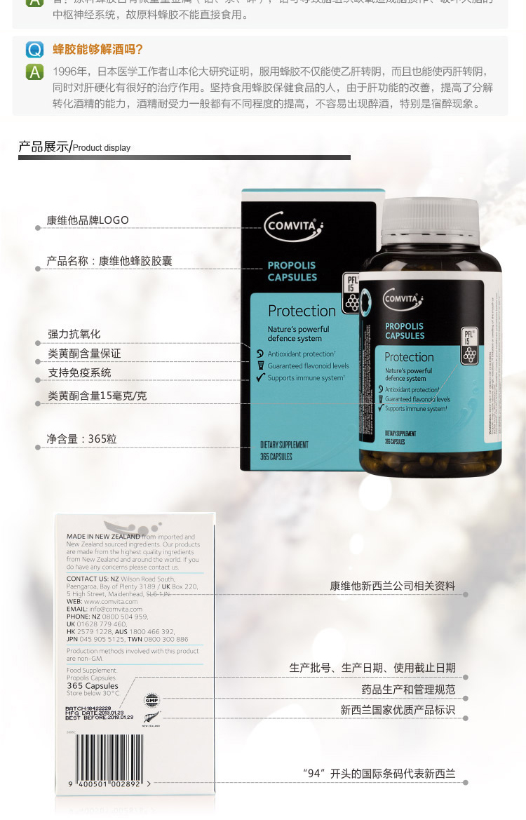 Comvita Propolis Capsules PFL15 365s 特价#Comvita 康维他 蜂胶胶囊 PFL15 365粒