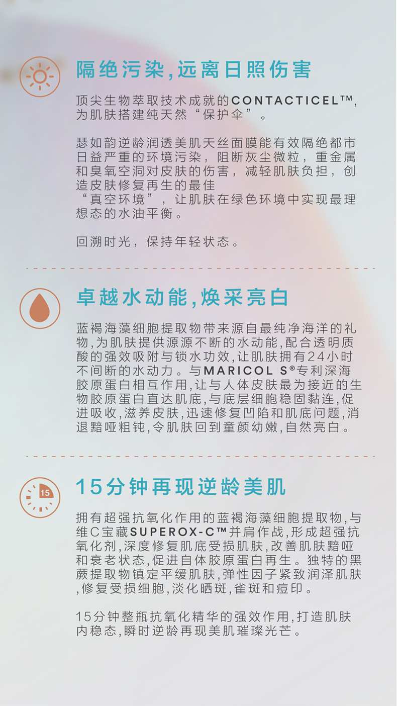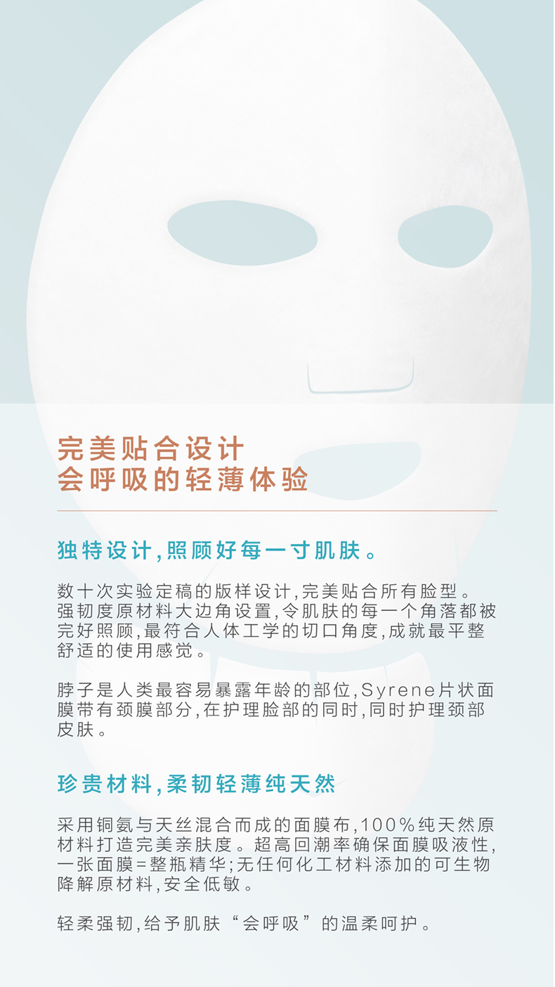 Syrene片状面膜配方中的新西兰黑蕨,嫩芽中富含大量的EGF表皮生长因子,具有抗氧化和修复功能,修复由于紫外线和低湿度等环境因素引起的皮肤损伤,深层补水修复,补充胶原蛋白,平衡油脂,从而使皮肤重返年轻状态。
