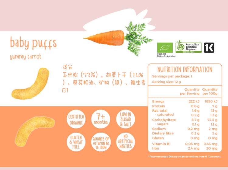 little bellies儿童泡芙 蓝莓/胡萝卜口味 12g
