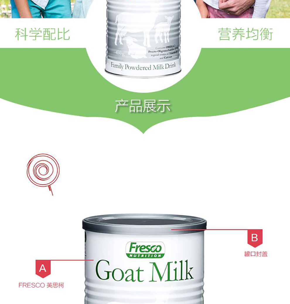 Fresco 芙思柯 全脂高钙成人中老年羊奶粉 450g/罐