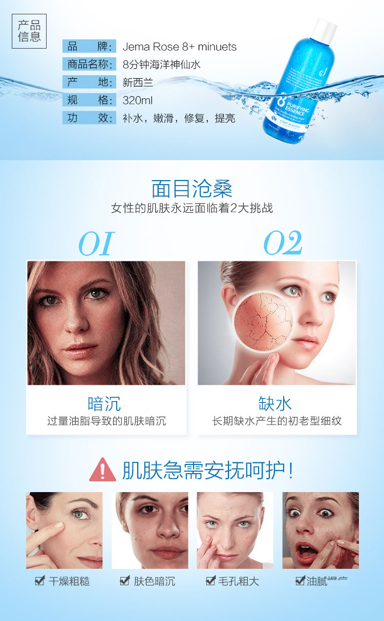 8+ Minutes 8分钟 海洋神仙水深海冰川爽肤水320ml大容量爽肤水肌底液精华液三合一