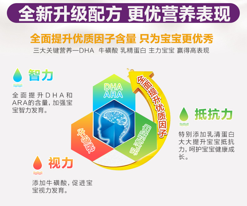 【产品介绍】奶粉中的爱马仕A2 Platinum白金系列高端牛奶粉是为婴幼儿而设计的特殊配方奶粉,它的营养很全面,能为宝宝提供成长和发育所需要的重要营养成分。该独特的配方奶粉含有天然的A2牛奶,能促进宝宝消化系统的发育,丰富的营养成分,有助于宝宝大脑和眼睛的发育,促进宝宝免疫系统的发育。
