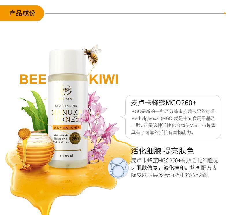 新西兰Nature's Beauty自然美Bee kiwi碧卡维麦卢卡爽肤水100ml
