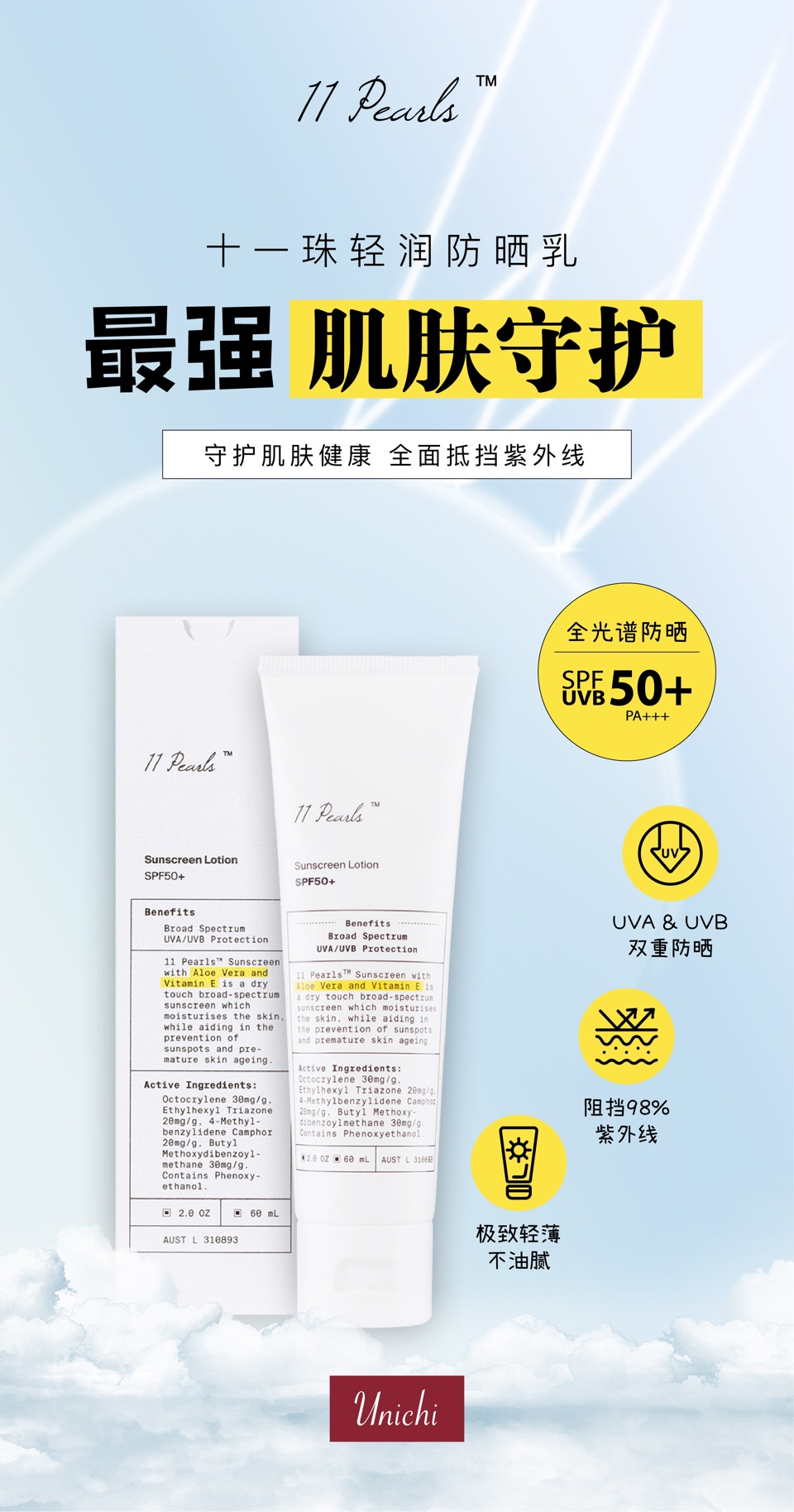 澳洲#Unichi# 11 Pearls™# 十一珠#珍珠美白#防晒乳#SPF50+ 60ml#清爽#不油腻#轻薄#保湿#澳洲Unichi 11 Pearls™ 十一珠 珍珠美白防晒乳SPF50+ 60ml#防晒十一珠#防晒#防晒乳液#澳洲Unichi 11 Pearls™ 十一珠 珍珠美白防晒乳SPF50+ 60ml#澳洲Unichi 11 Pearls™ 十一珠 珍珠美白防晒乳SPF50+ 60ml#澳洲Unichi 11 Pearls™ 十一珠 珍珠美白防晒乳SPF50+ 60ml#
