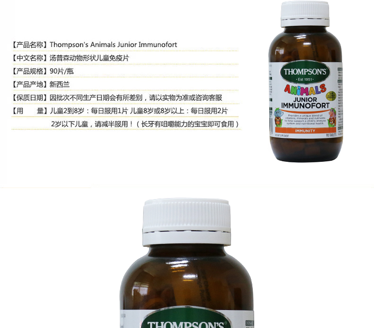Thompsons Animals Junior Immunofort 90t#免疫力#儿童维生素#生长发育#Thompsons#汤普森#儿童综合#营养免疫片#Thompsons 汤普森儿童综合营养免疫片 90粒