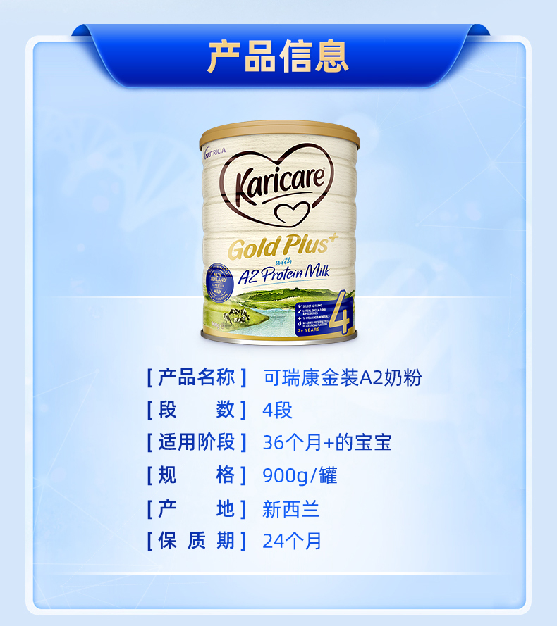 【新版】Karicare 可瑞康 金装A2 婴儿配方奶粉 4段 900g*6罐【新西兰直邮】#【新版】#Karicare# 可瑞康金装# 金装奶粉#A2# 婴儿奶粉#配方奶粉 #4段# 900g*6罐#可瑞康奶粉#3岁以上的宝宝#