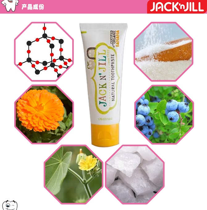 世界上真正安全可食的宝宝牙膏,jake n' jill是1949年在澳洲墨尔本成立的家族公司,专门生产儿童牙膏,照片上的是现在年轻的老板夫妻俩,因为自己有宝宝,所以两人更加致力于发明更安全,更可靠,宝宝安全使用的安全牙膏,因为在牙膏行业多年,知道很多大品牌的儿童牙膏里面都含有化学元素,而宝宝有时喜欢吞食牙膏,这样怎么可以,因为老公是药剂师,所以他们开始研制天然的,宝宝可以吞服,还防蛀的天然牙膏,牙膏主要是玉米淀粉制成,不含双酚A,无氟,不含防腐剂,不含化学添加剂!现在jake n' jill已经畅销世界,成为许多妈妈的首选哦!