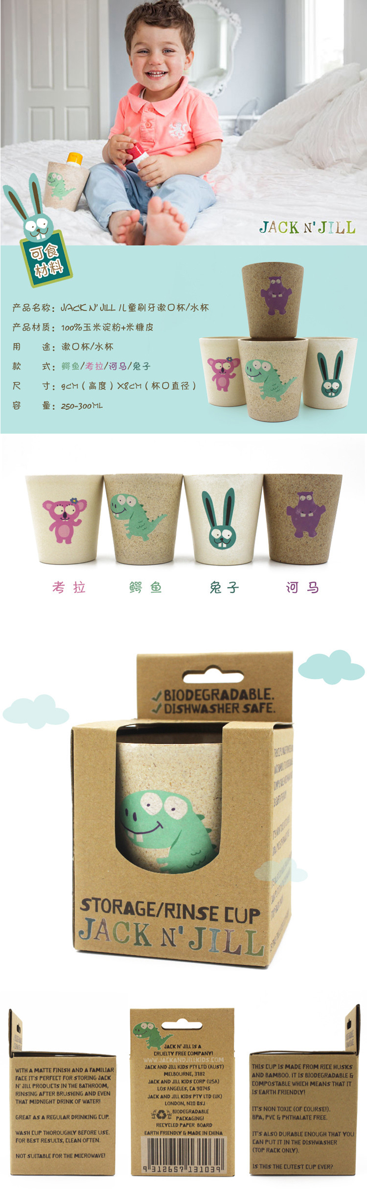 【产品名称】 Jack N' Jill 天然有机材质 稻谷+竹子 儿童漱口杯 可爱动物图案