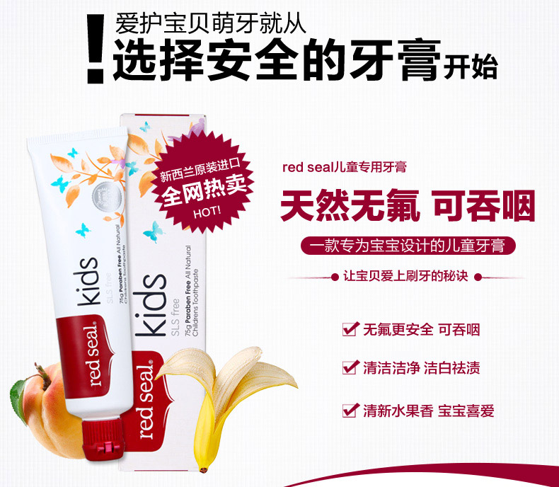 Red Seal Kids Natural Toothpaste75g#Red Seal 红印#红印牙膏#不含氟牙膏#牙膏#儿童牙膏#Red Seal 红印 纯天然可吞咽儿童牙膏75g#Red Seal 红印 纯天然可吞咽儿童牙膏75g#Red Seal 红印 纯天然可吞咽儿童牙膏75g#