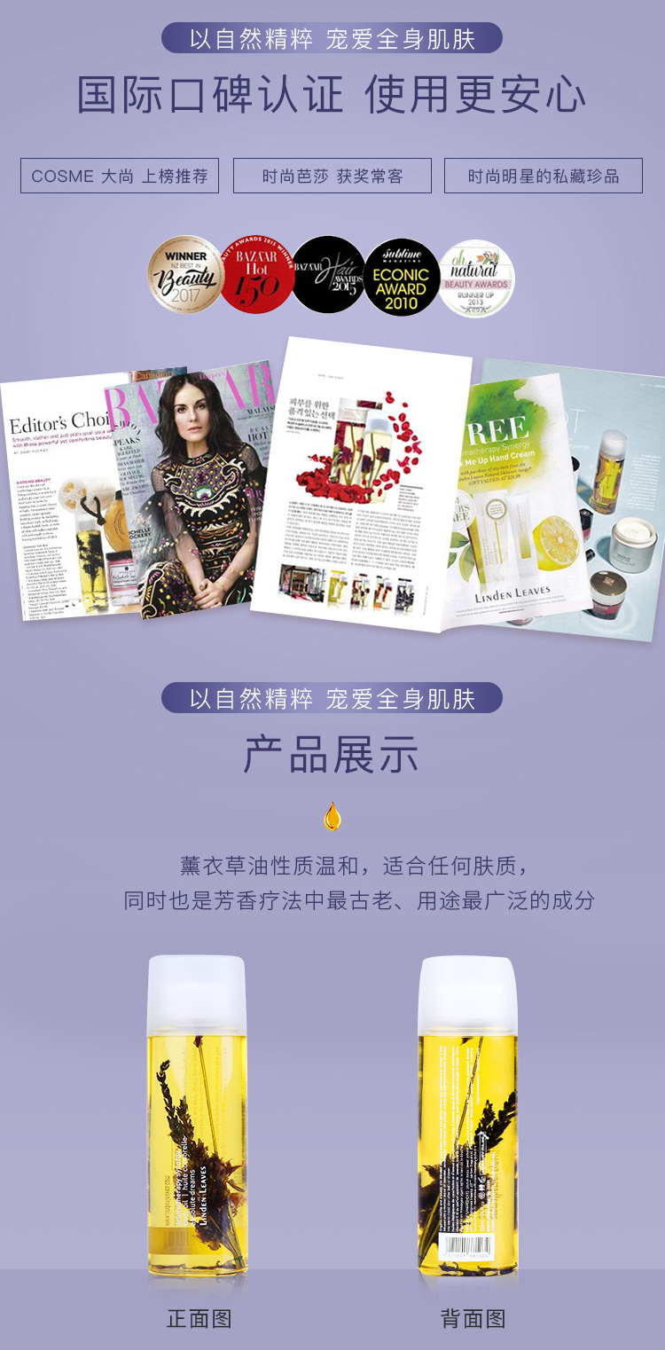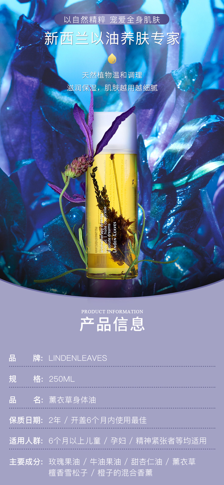 特价Linden Leaves bodyoil Lavender 250ml#Linden Leaves#身体精油#滋润#收缩毛孔#薰衣草精油#补水滋润#按摩精油#Linden Leaves 菩提叶薰衣草身体美白精油 250ml